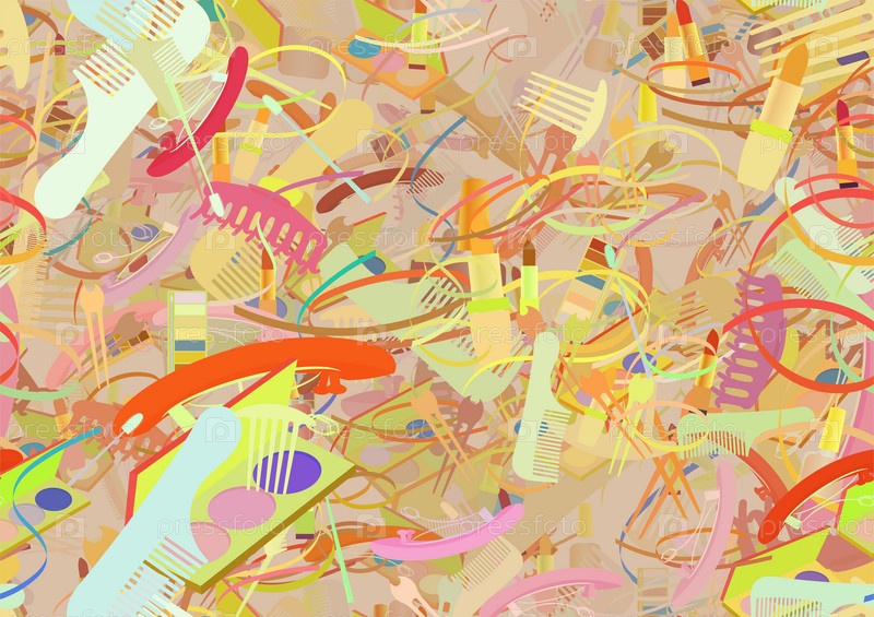 Фоновый узор абстрактный бесшовный дизайн текстуры. Тема про расческу, зажим, узкие изделия, лак для ногтей