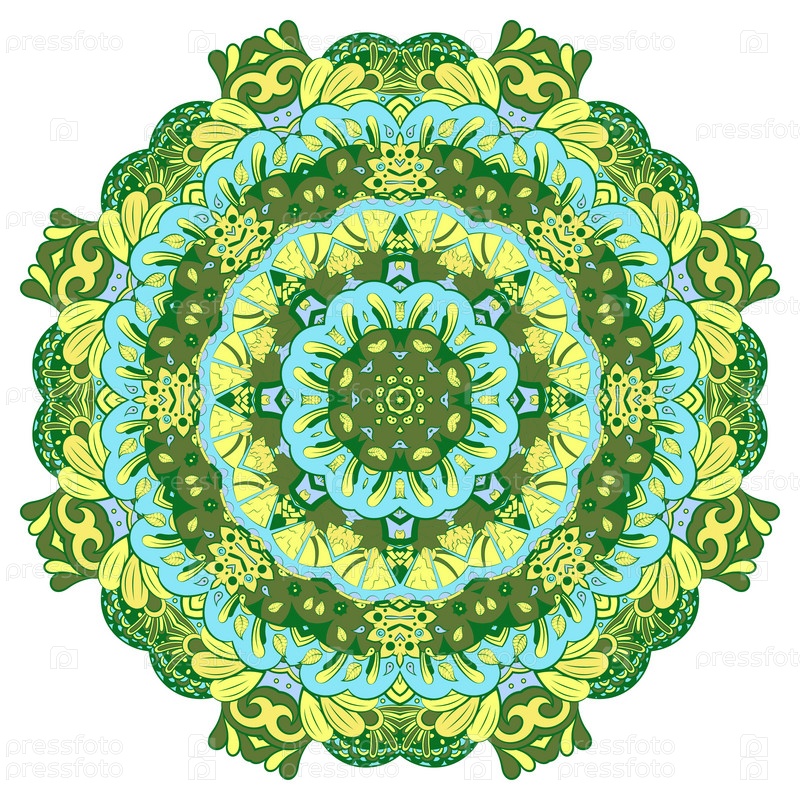 Мандала. Изображение ажурного колеса. Менди дизайн. Этническое каракули. Изогнутая картинка. Вектор