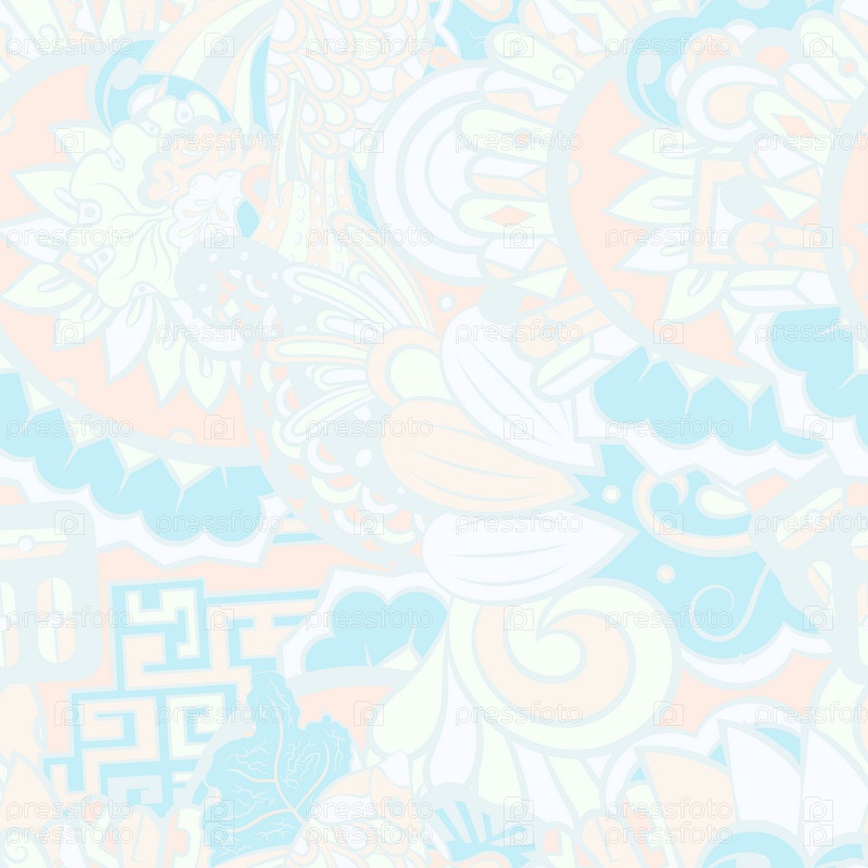 Ажурный бесшовный узор. Менди дизайн. Пастель. 6 цветов. Этническая текстура каракулей. Изогнутый рисунок фона. Вектор