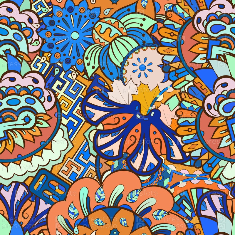 Ажурный бесшовный узор. Менди дизайн. Этническая текстура каракулей. Изогнутый рисунок фона. Вектор