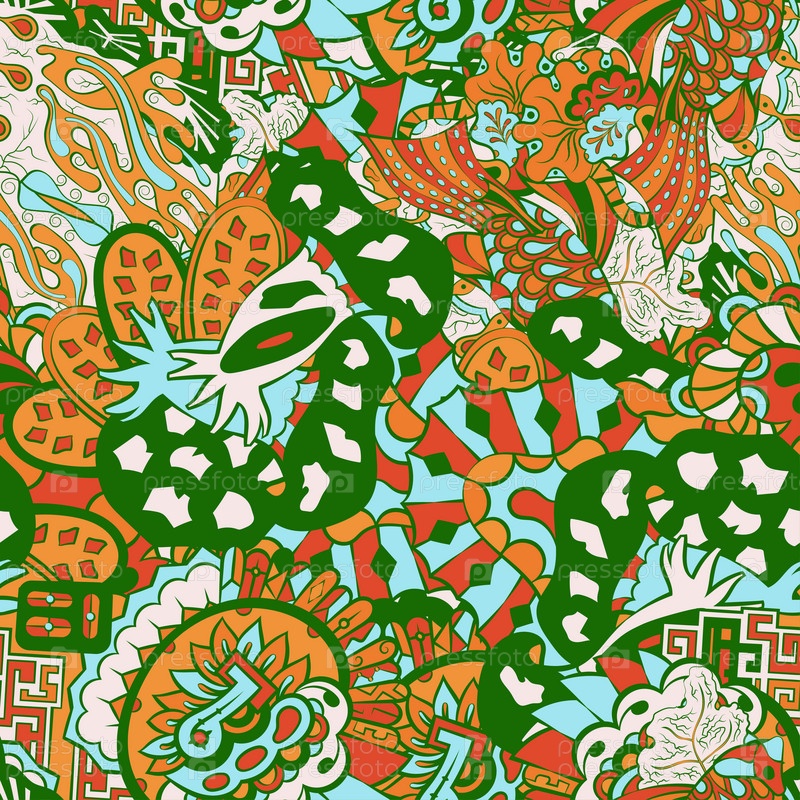 Ажурный бесшовный узор. Менди дизайн. 6 цветов. Этническая текстура каракулей. Изогнутый рисунок фона. Вектор