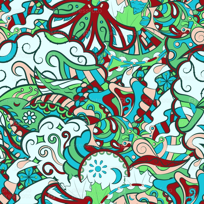 Ажурный бесшовный узор. Менди дизайн. 7 цветов. Этническая текстура каракулей. Изогнутый рисунок фона. Вектор