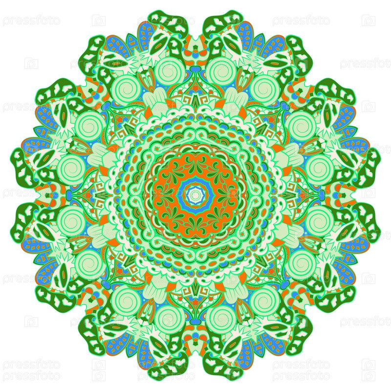 Мандала. Изображение ажурного колеса. Менди дизайн. Этническое каракули. Изогнутая картинка. Вектор