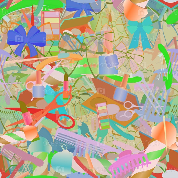 Фоновый узор абстрактный бесшовный дизайн текстуры. Тема о ножницах, граблях, парикмахерской, прическе