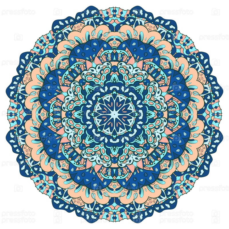 Мандала. Изображение ажурного колеса. Менди дизайн. Этническое каракули. Изогнутая картинка. Вектор