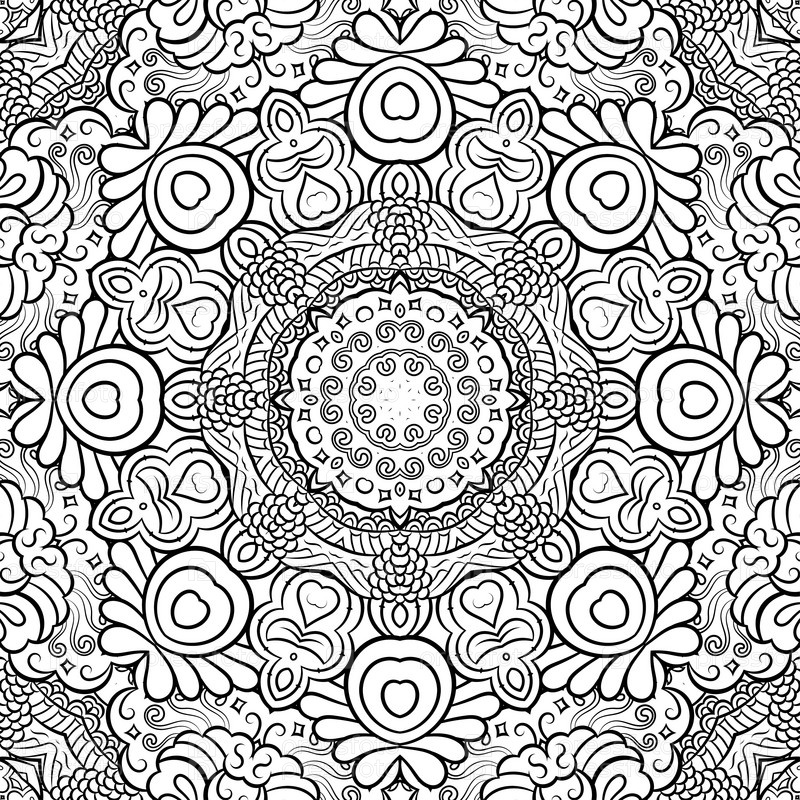 Текстура бесшовной плитки. Ажурное изображение дизайна Менди. Бинарный монохромный черно-белый. Этническое каракули. Изогнутая картинка. Вектор