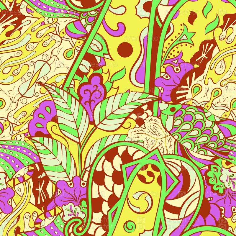 Ажурный бесшовный узор. Менди дизайн. 6 цветов. Этническая текстура каракулей. Изогнутый рисунок фона. Вектор
