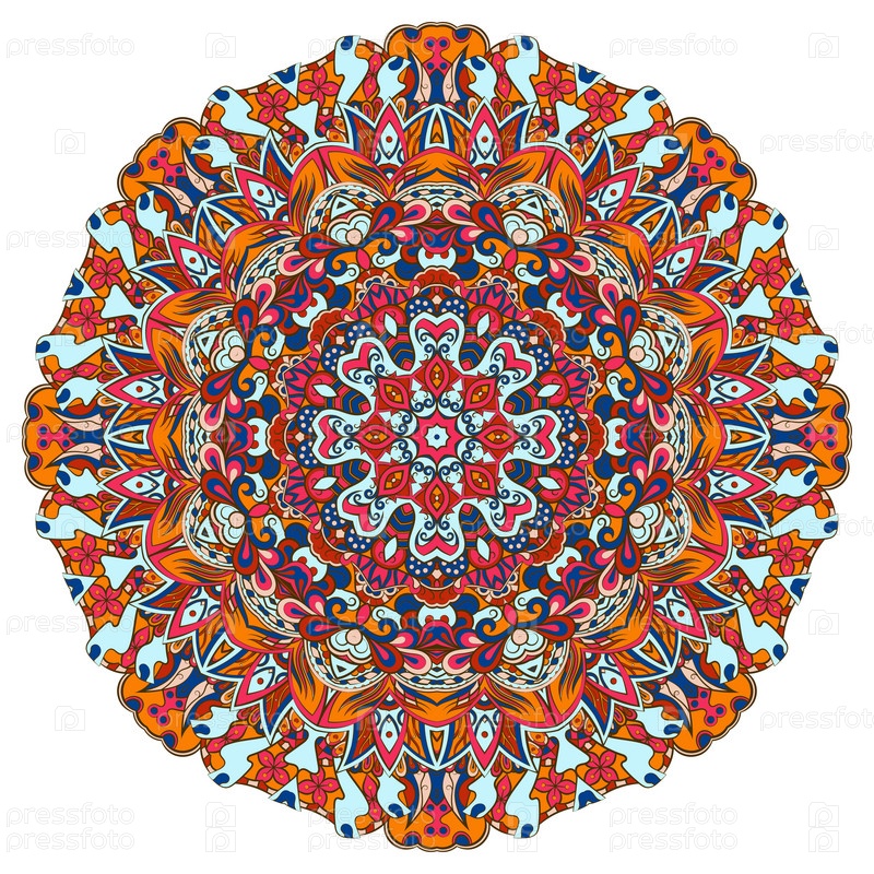 Мандала. Изображение ажурного колеса. Менди дизайн. Этническое каракули. Изогнутая картинка. Вектор