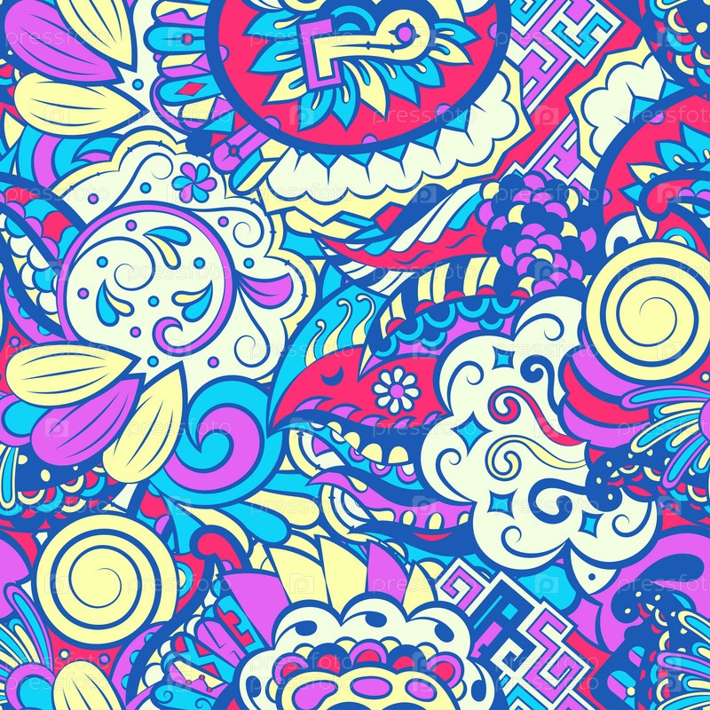 Ажурный бесшовный узор. Менди дизайн. 6 цветов. Этническая текстура каракулей. Изогнутый рисунок фона. Вектор