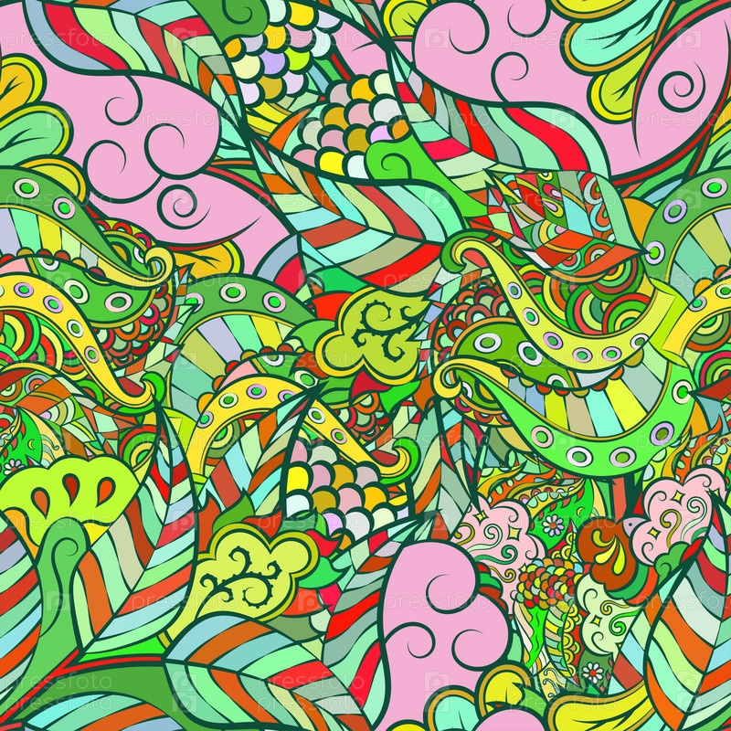 Ажурный бесшовный узор. Менди дизайн. Этническая текстура каракулей. Изогнутый рисунок фона. Вектор
