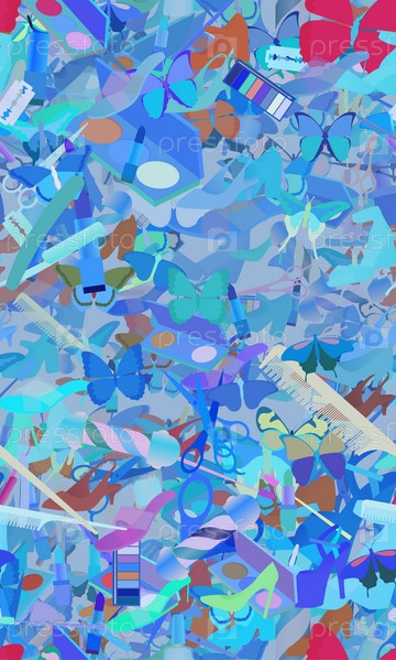 Фоновый узор абстрактный бесшовный дизайн текстуры. Тема о помаде, витиеватости, дикой природе, гламуре, обуви