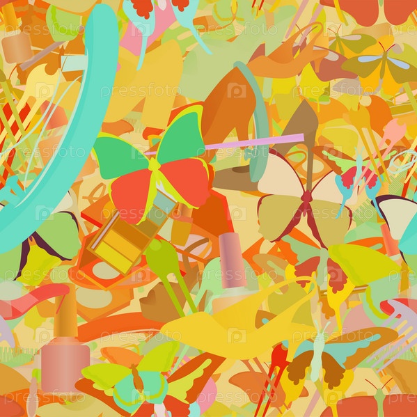 Фоновый узор абстрактный бесшовный дизайн текстуры. Тема о дикой природе, обувном магазине, дамах, красном адмирале, моде