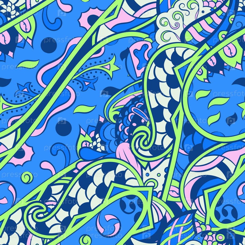 Ажурный бесшовный узор. Менди дизайн. 6 цветов. Этническая текстура каракулей. Изогнутый рисунок фона. Вектор