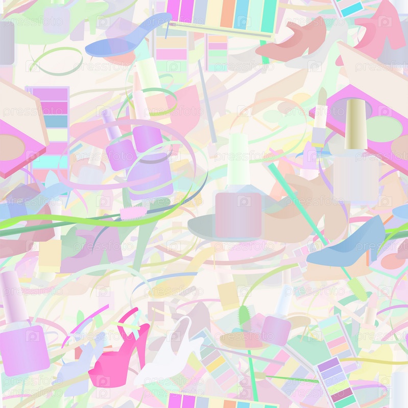 Фоновый узор абстрактный бесшовный дизайн текстуры. Пастель. Тема о макияже, помаде, дамах, нитках