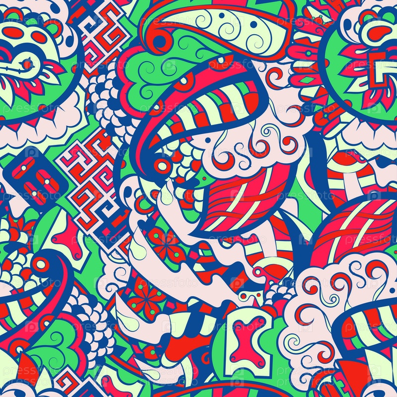 Ажурный бесшовный узор. Менди дизайн. 6 цветов. Этническая текстура каракулей. Изогнутый рисунок фона. Вектор