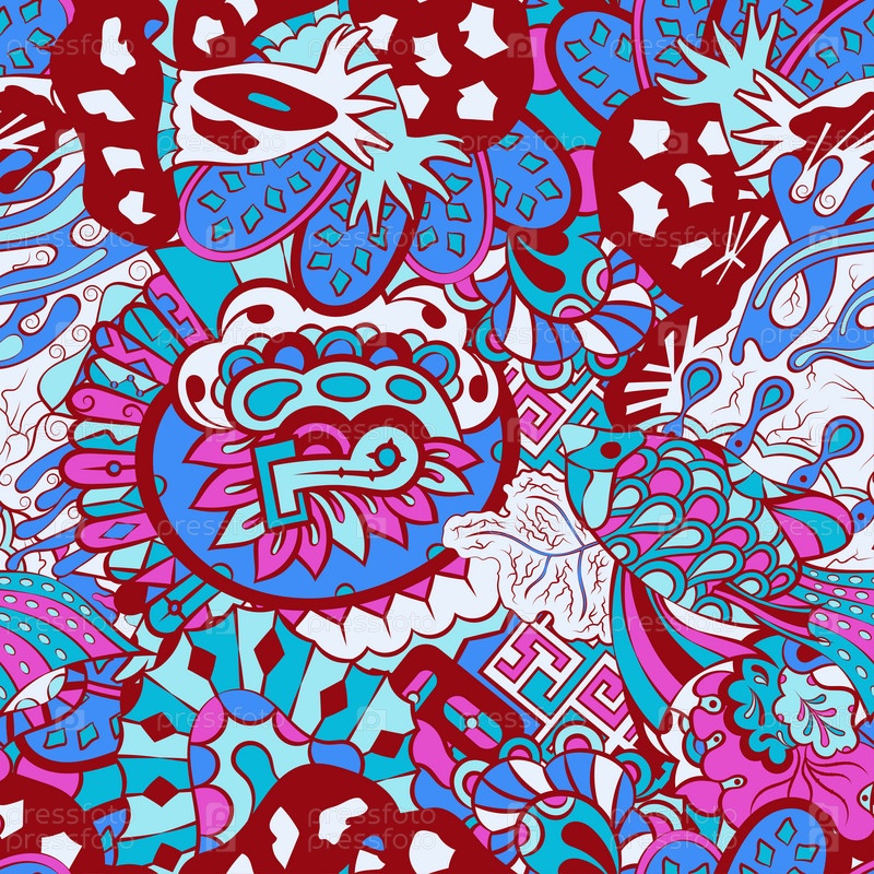 Ажурный бесшовный узор. Менди дизайн. 6 цветов. Этническая текстура каракулей. Изогнутый рисунок фона. Вектор