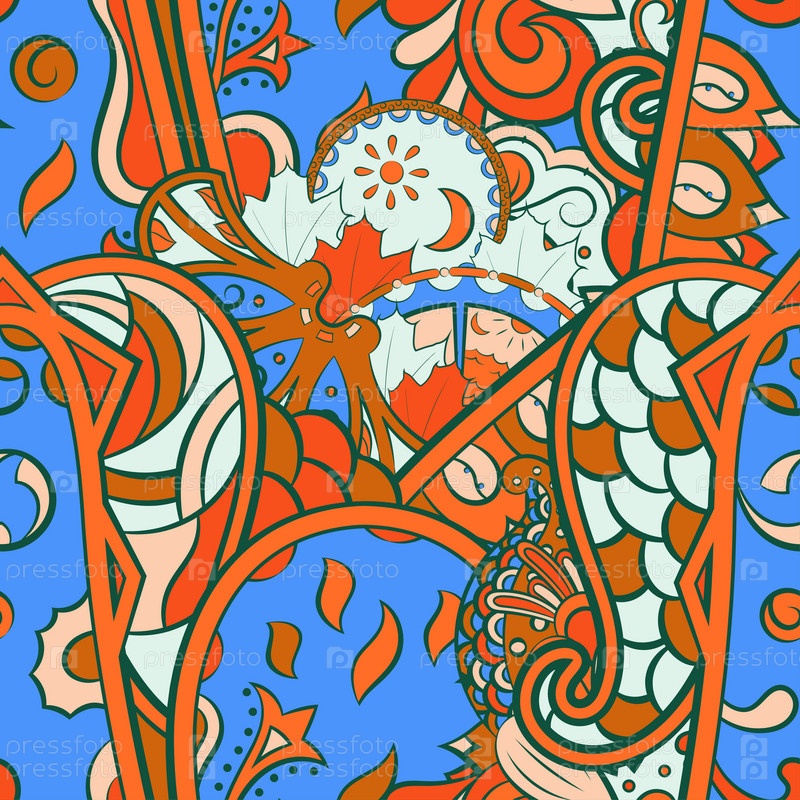 Ажурный бесшовный узор. Менди дизайн. 7 цветов. Этническая текстура каракулей. Изогнутый рисунок фона. Вектор