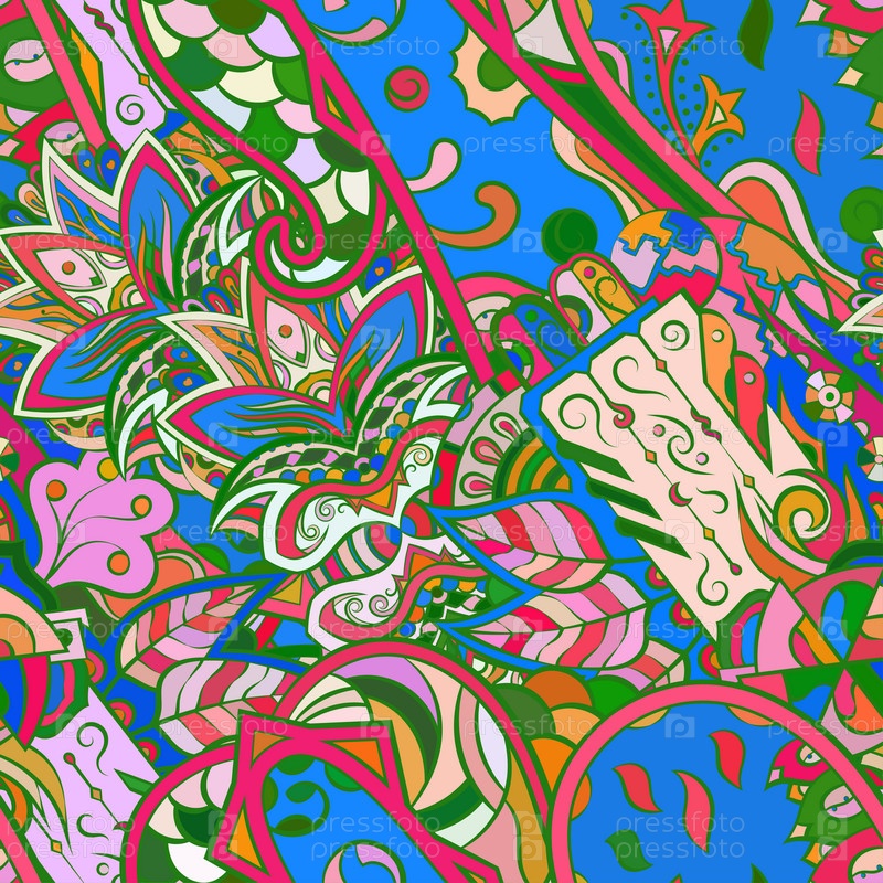 Ажурный бесшовный узор. Менди дизайн. Этническая текстура каракулей. Изогнутый рисунок фона. Вектор