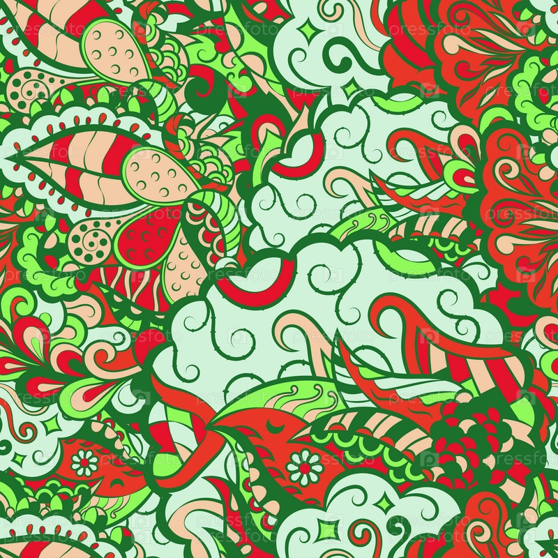 Ажурный бесшовный узор. Менди дизайн. 6 цветов. Этническая текстура каракулей. Изогнутый рисунок фона. Вектор