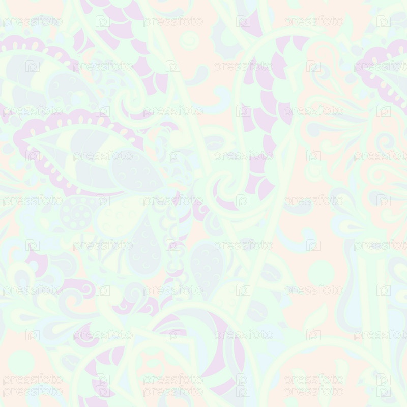 Ажурный бесшовный узор. Менди дизайн. Пастель. 6 цветов. Этническая текстура каракулей. Изогнутый рисунок фона. Вектор