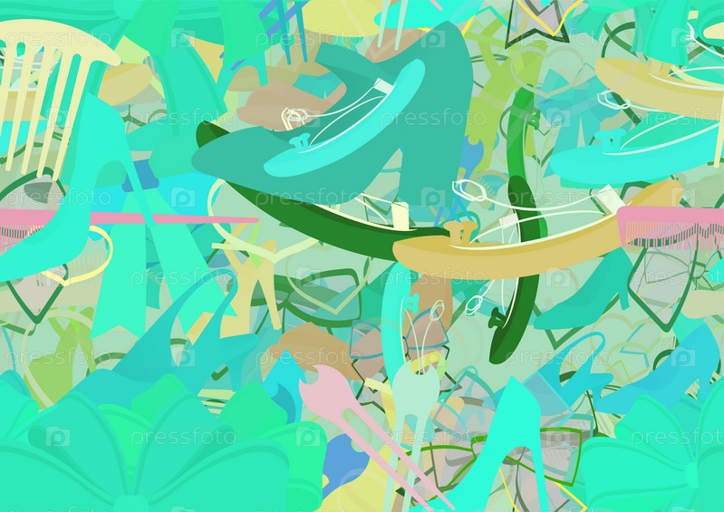 Фоновый узор абстрактный бесшовный дизайн текстуры. Тема о повседневной жизни, стиле, одежде, обувном магазине, туфлях