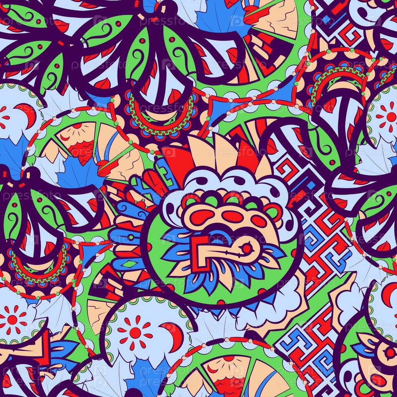 Ажурный бесшовный узор. Менди дизайн. 6 цветов. Этническая текстура каракулей. Изогнутый рисунок фона. Вектор