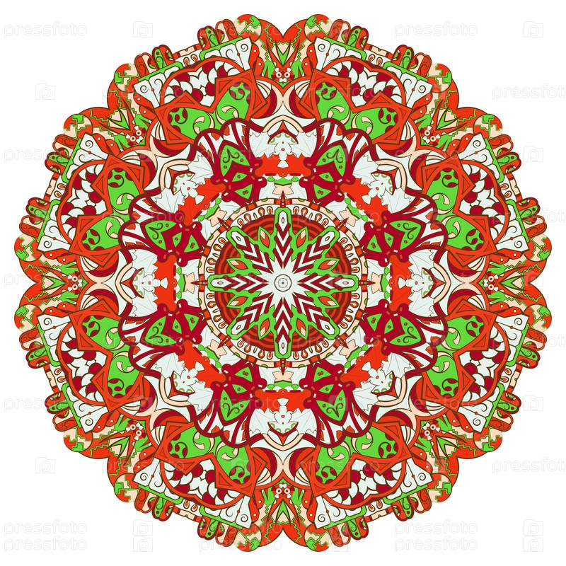 Мандала. Изображение ажурного колеса. Менди дизайн. Этническое каракули. Изогнутая картинка. Вектор