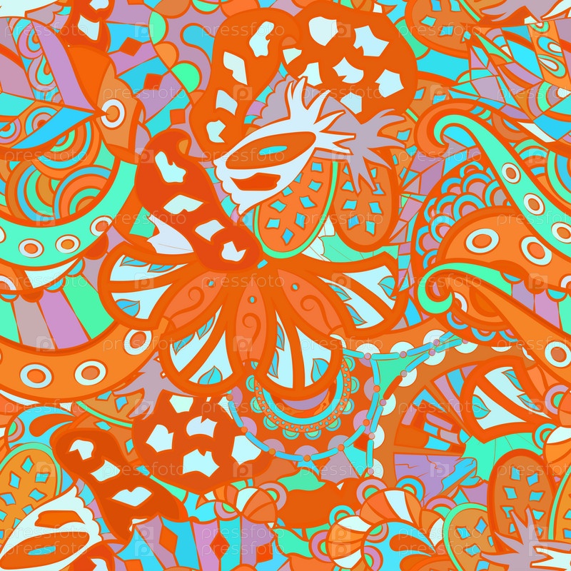 Ажурный бесшовный узор. Менди дизайн. Этническая текстура каракулей. Изогнутый рисунок фона. Вектор