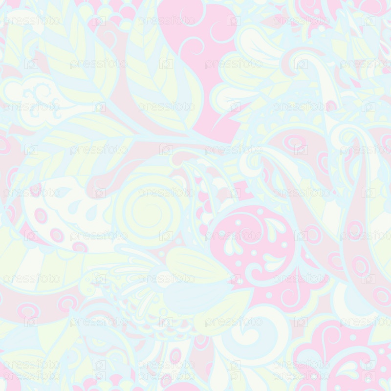 Ажурный бесшовный узор. Менди дизайн. Пастель. 7 цветов. Этническая текстура каракулей. Изогнутый рисунок фона. Вектор