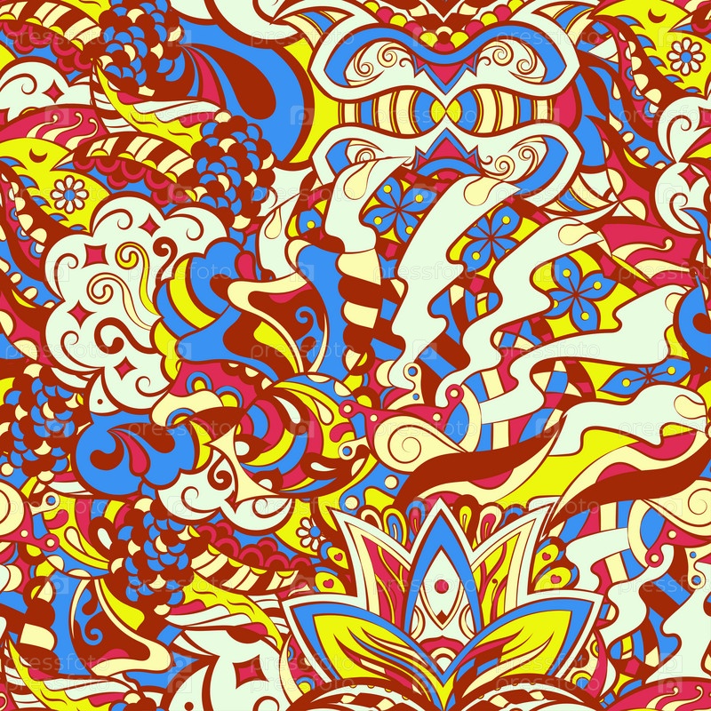 Ажурный бесшовный узор. Менди дизайн. 6 цветов. Этническая текстура каракулей. Изогнутый рисунок фона. Вектор