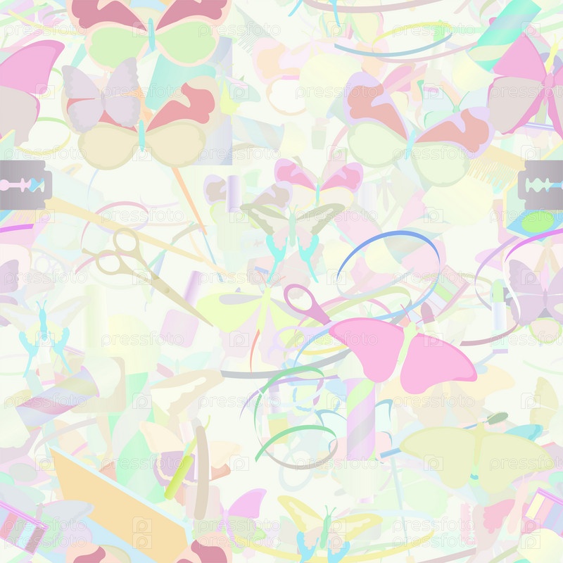Фоновый узор абстрактный бесшовный дизайн текстуры. Пастель. Тема о ножницах, тонах, дикой природе, салоне