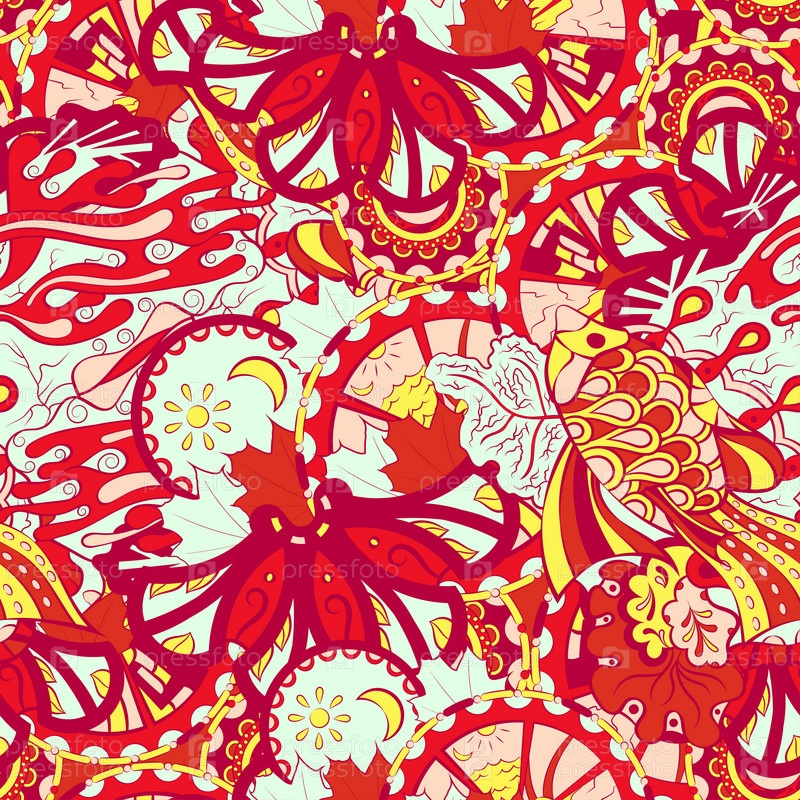 Ажурный бесшовный узор. Менди дизайн. 6 цветов. Этническая текстура каракулей. Изогнутый рисунок фона. Вектор
