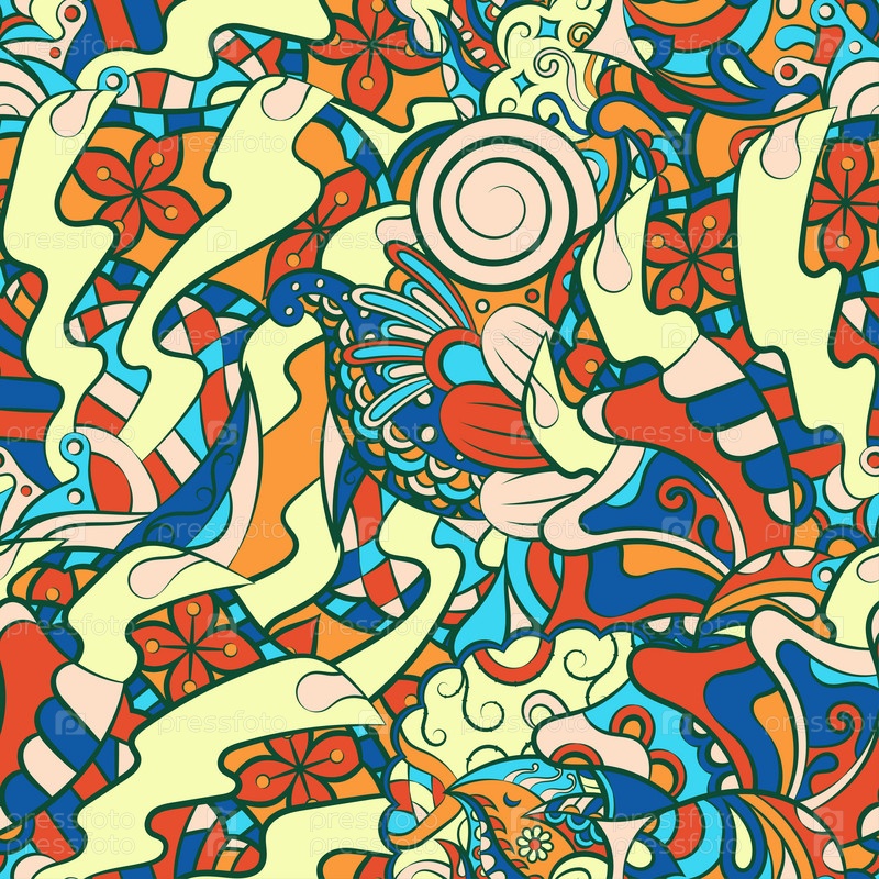 Ажурный бесшовный узор. Менди дизайн. 7 цветов. Этническая текстура каракулей. Изогнутый рисунок фона. Вектор