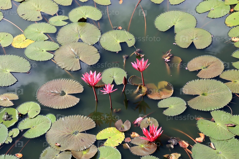 Цветущие лотосы в пруду. Шри-Ланка