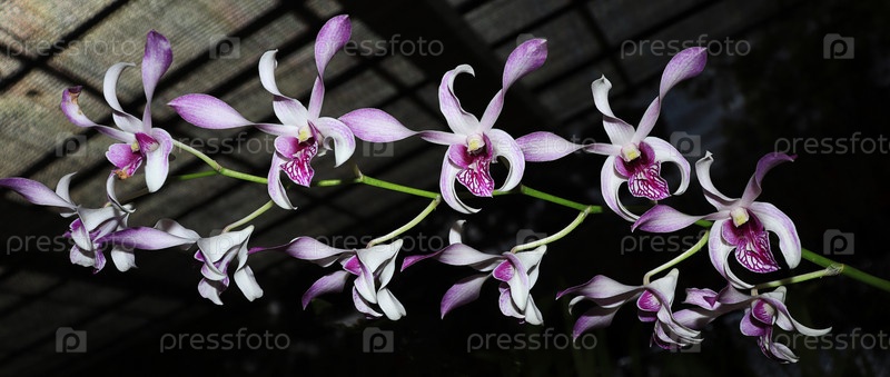 Цветущая ветка орхидеи на темном фоне