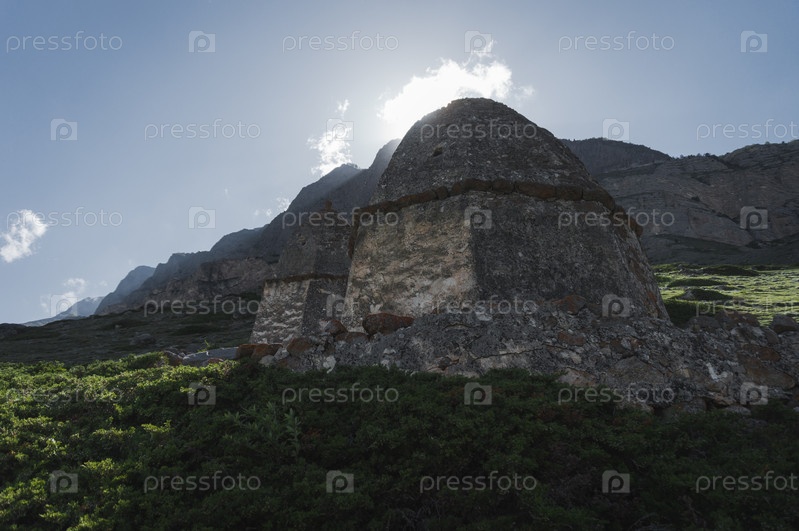 Древние склепы на кладбище в горах Кавказа