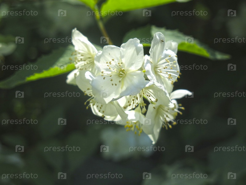 Нежный ароматный жасмин благоухает в саду весной