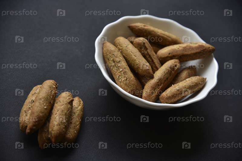 Небольшое острое печенье в виде булочек на тарелке. Печенье крупным планом