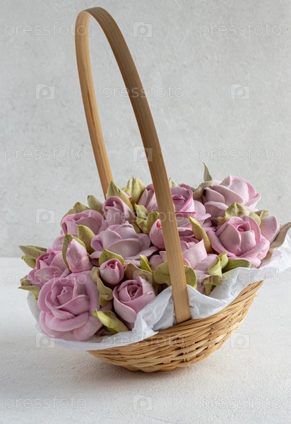 Цветы в пастельных тонах в белой корзине изолированы, флористический свадебный подарок фон, 8 марта, женщины