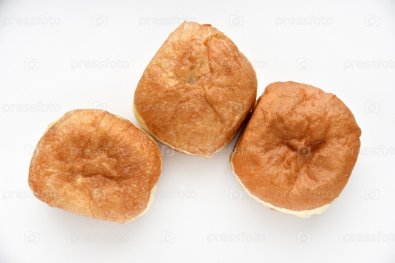 Вкусные булочки с джемом на белом фоне. Сладкие пончики с начинкой крупным планом
