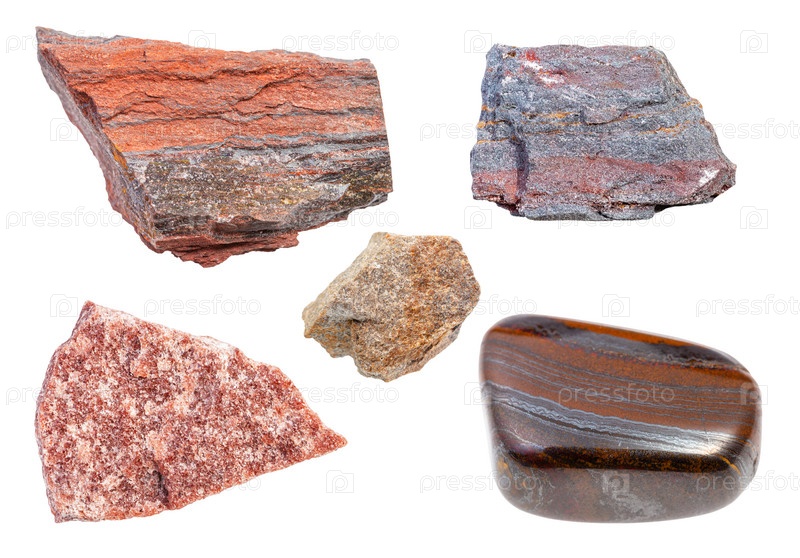 Набор различных кварцитовых пород, изолированных на белом