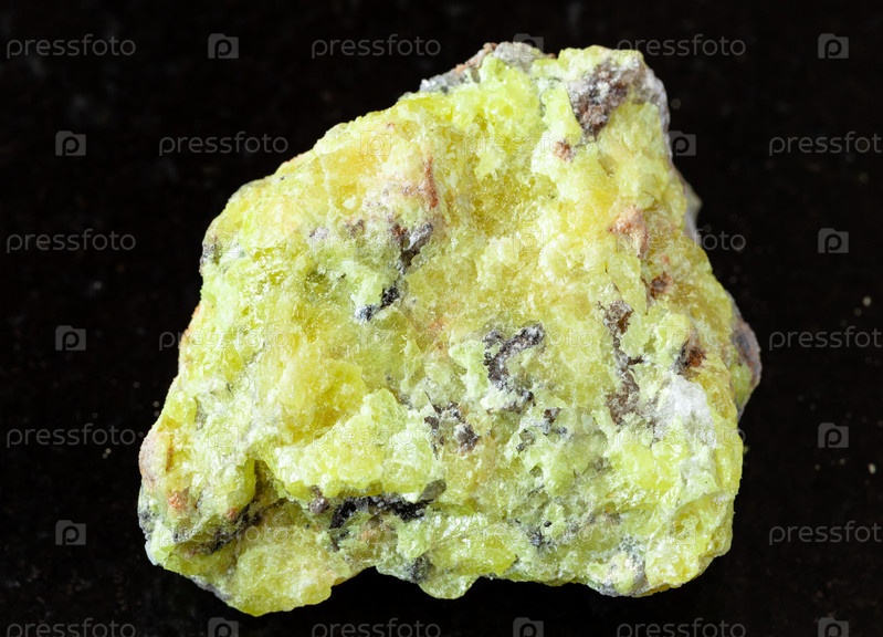 Грубая родная сера (сера) скала на черном