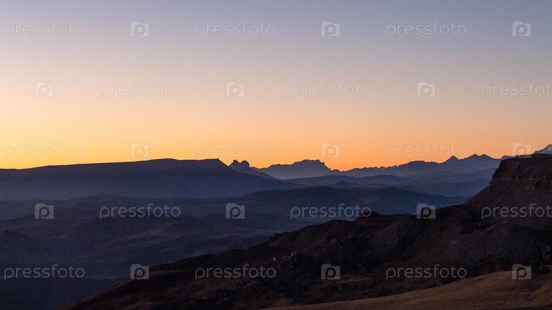 Вид на Кавказские горы с Бермамыта на рассвете