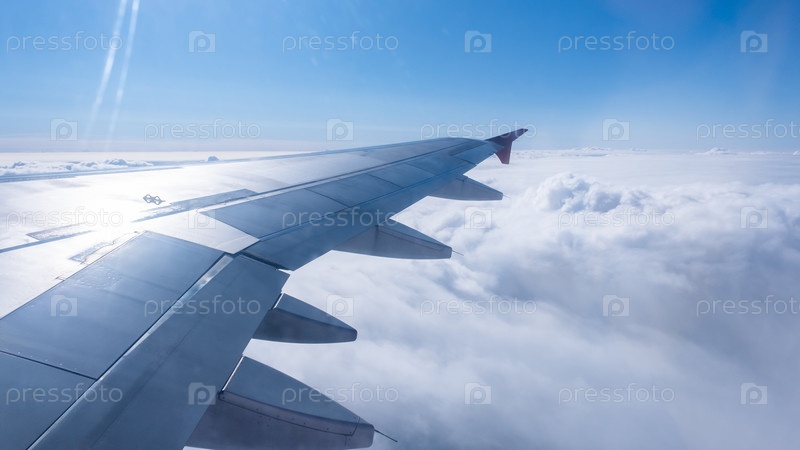 Вид на белые облака из иллюминатора самолета