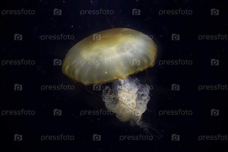 Красивая медуза с длинным хвостом на черном фоне