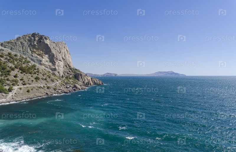 Крым. Одна из трех Новосветских бухт - Синяя (Разбойничья). Вид в сторону мыса Меганом