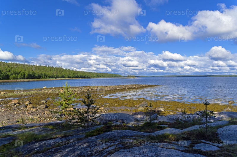 Литораль во время отлива. Берег Белого моря. Карелия, Россия, конец июня