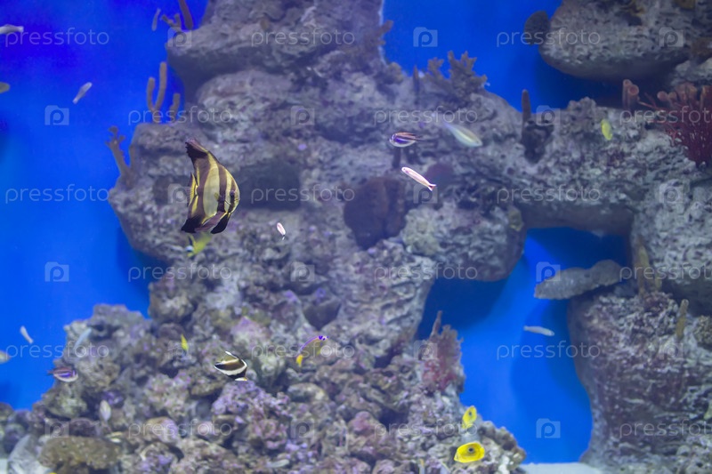 Красочные тропические экзотические рыбы на фоне рифа