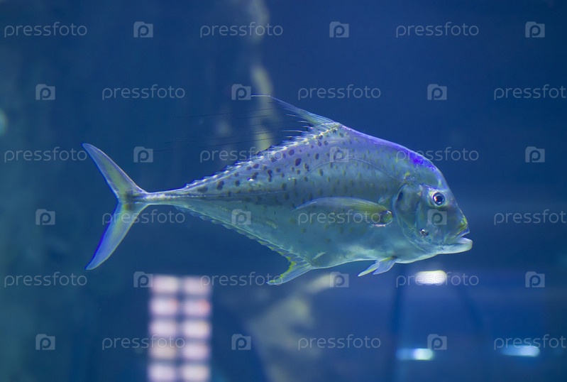 Большая тропическая рыба на синем фоне