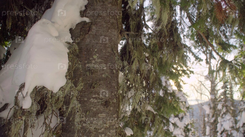Вид на зимнюю ель в сибирских горах